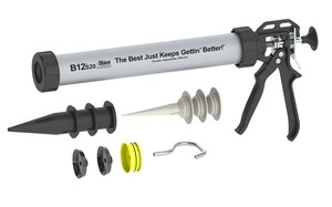 Albion b12 caulk gun 1/10 gallon cartridge 12:1 drive. Adjustable wear compensating device with a steel. Full sized handle for comfortable, efficient dispensing. Best for high volume or industrial applicationsmaterial type: Use with 10oz or 300ml sealant cartridges.