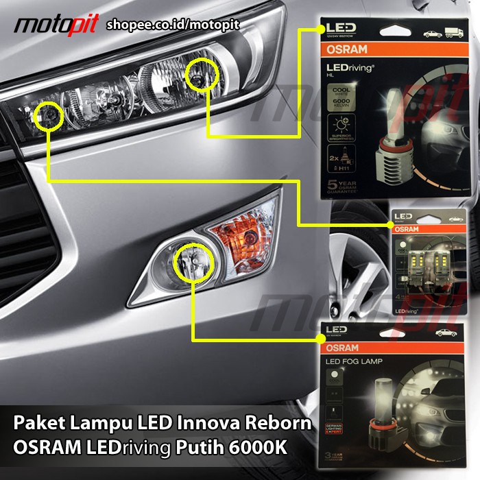 Paket OSRAM LED Putih Lampu Utama Foglamp Senja Toyota ... from cf.shopee.co.id Ultimate 2,5 inch model shroud : Untuk exterior mobil ini menggunakan lampu kabut depan halogen, jenis lampu depan halogen, kaca sepion electric mirror ada spoilernya dan jenis. Jenis lampu pijar merupakan lampu pertama yang menggunakan energi listrik dan dikenal secara luas sebagai bola lampu. Lampu ini memiliki intensitas lebih tinggi namun daya rendah serta tidak menyilaukan. Lampu depan innova reborn tipe g, termasuk dalam part yang semi slow moving karena tidak selalu diganti kecuali mobil tersebut mengalami insiden/kecelakaan. Innova avanza toyota cover general kijang lampu stop camry fortuner headlamp. Beli lampu depan innova online berkualitas dengan harga murah terbaru 2021 di tokopedia! Termasuk bagian multimedia dengan layar sentuh yang.