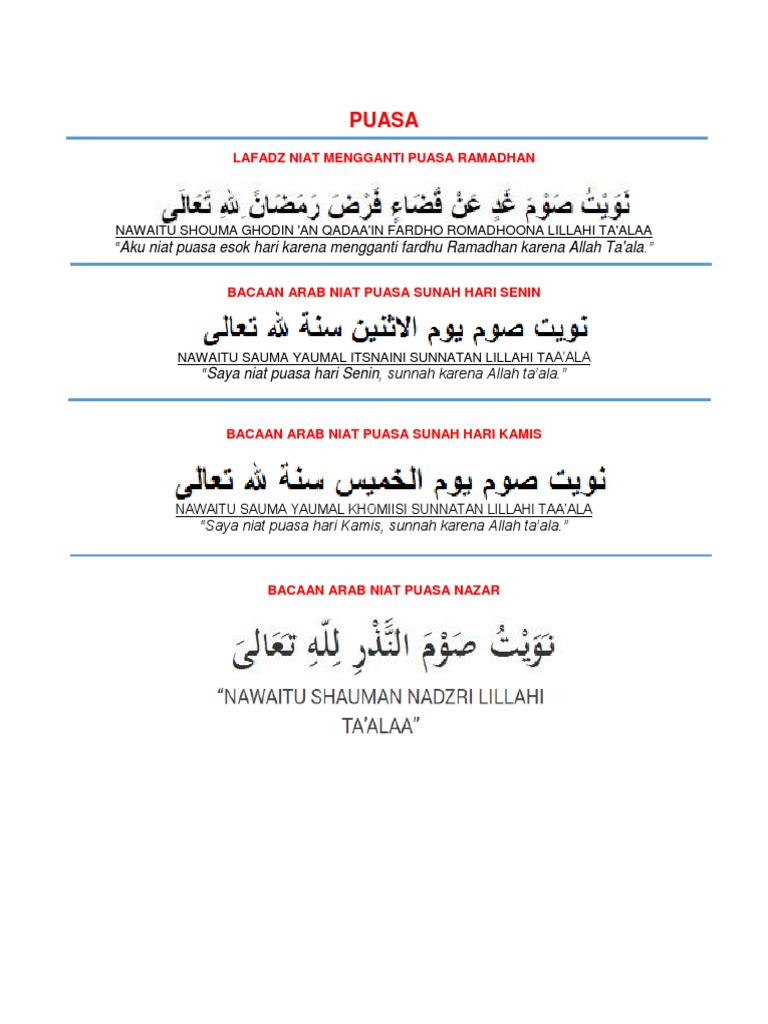 Niat puasa senin kamis yang dilakukan istiqomah secara terus menerus akan sangat baik untuk mengencangkan kulit. Menurut keempatnya, niat boleh dilakukan sejak terbenamnya matahari. Orang tua renta kakek atau nenek tua renta yang tidak sanggup lagi menjalankan puasa, tidak terkena tuntutan. Sebelum membahas niat puasa akan lebih baik jika kita menilik sedikit apa itu rukun puasa. Puasa qadha atau puasa pengganti wajib dilakukan umat islam yang karena suatu hal sesuai syar'i tidak bisa melaksanakan puasa di bulan sementara imam hanafi dan hanbali mengatakan niat merupakan syarat puasa.