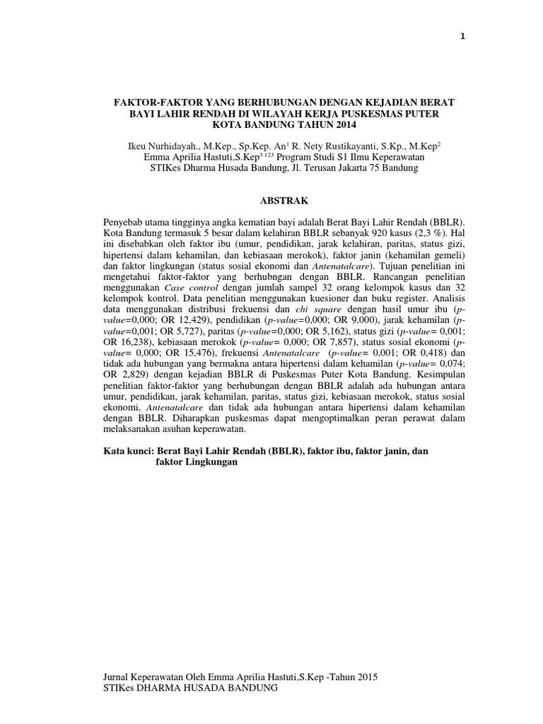 Pembuangan bayi dalam perspektif penelantaran anak. Jurnal fakultas hukum universitas lampung. 0 ratings0% found this document useful (0 votes). Terdapat enam faktor tekanan yang dikaji. Faktor faktor yang mempengaruhi kejadian bayi berat lahir rendah (bblr) di rsud suryati, (2014).