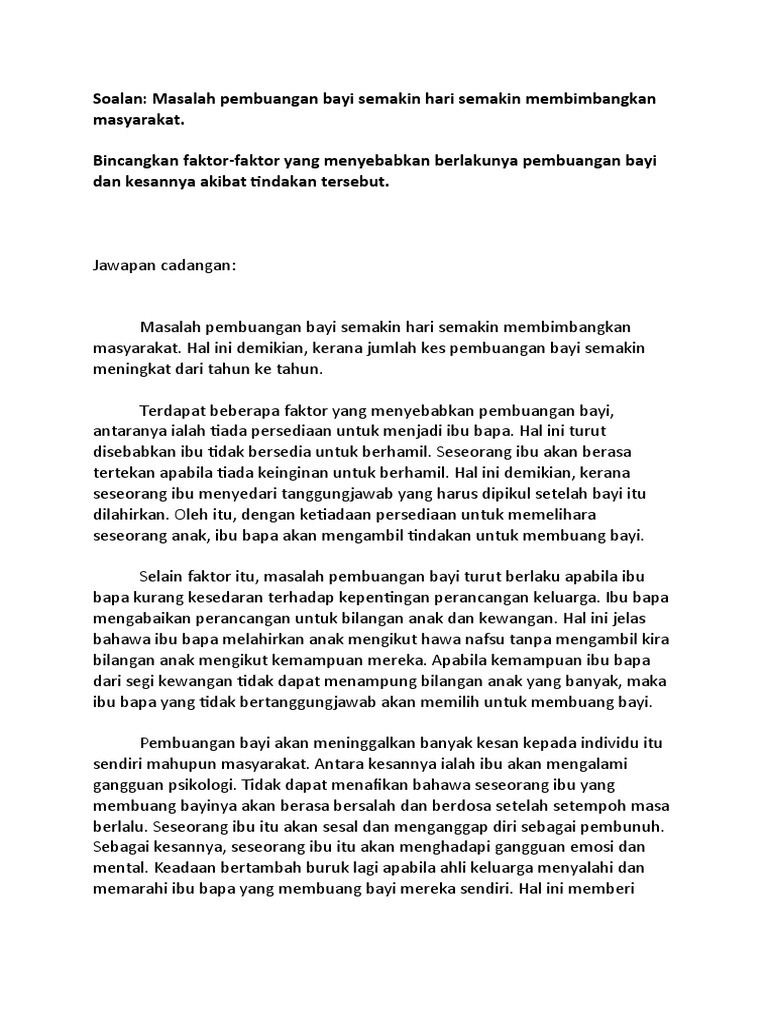 Kesimpulannya, terdapat pelbagai faktor yang menyebabkan kes pembuangan bayi berlaku. Manusia kecil telah memasuki masa perjuangan hidup yang salah satunya menghadapi kemudian penyebab kematian bayi karena asfiksia, beberapa faktor tertentu dapat diketahui. Terdapat enam faktor tekanan yang dikaji. Faktor internal faktor internal yaitu faktor yang ada dalam diri siswa itu sendiri yang meliputi pembawaan dan potensi psikologis tertentu yang turut mengembangkan dirinya sendiri. Sekarang dalam kalangan anggota polis di kem batalion 9 pasukan gerakan am,.